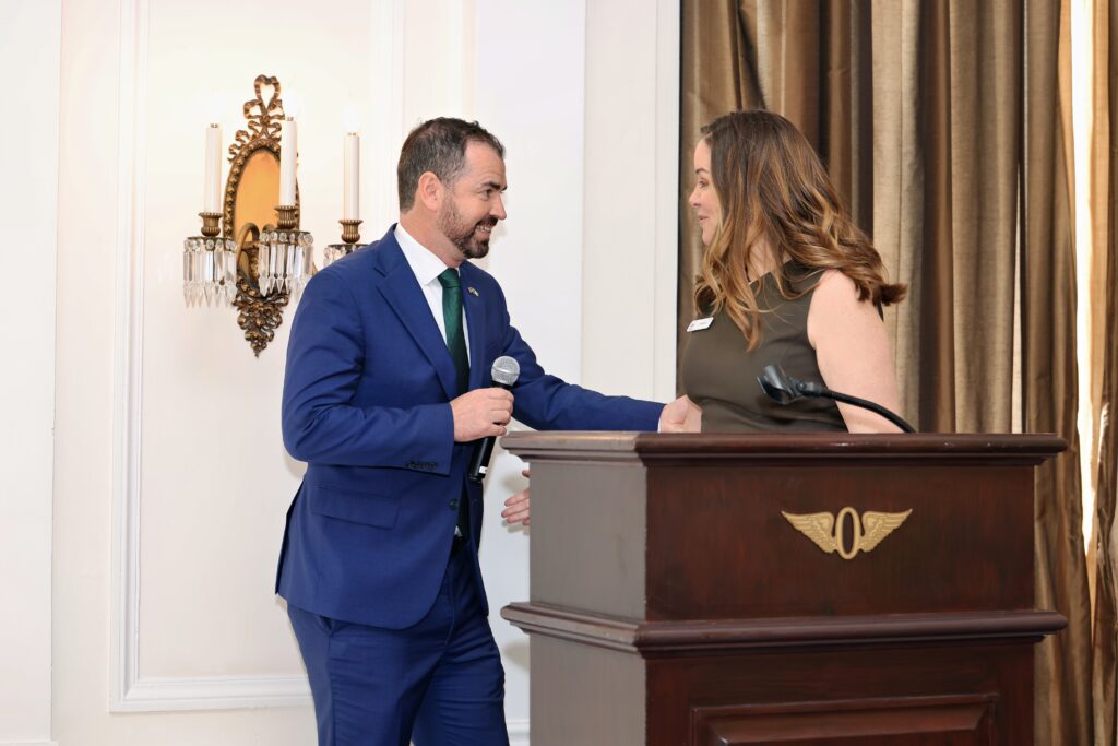 The articulate and immensely likeable bronze medalist was invited to San Franciso for the lunch by the INBA. Mona travelled with her boyfriend David from her training base in Tennessee. Introduced by Ireland’s Consul General Micheal Smith and Irish Government Minster for Agriculture Martin Heydon, sports diplomacy was on show for the packed room at the Olympic Club on Friday March 13th.