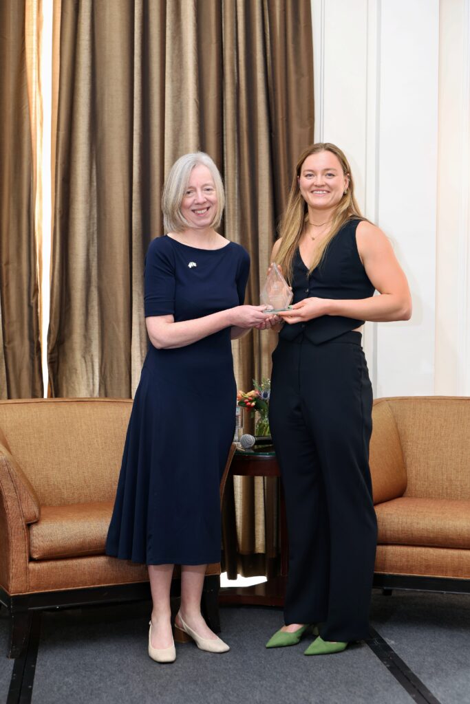 Mona also told he story behind that Olympic tattoo on her arm and her love of her dog and the legendary Irish chocolate bar Crunchie. The Crunchie was duly presented along with the golden fortune cookie and a commemorative plaque by Jessica Dowling Hammer, President of the INBA, and Ciara Traynor Deputy Consul General of the Irish consulate.